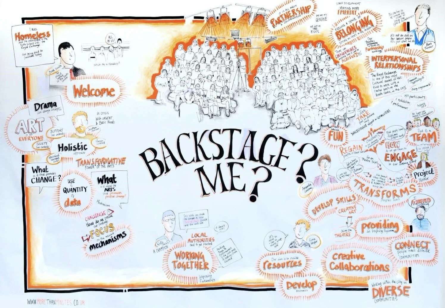 In April 2014, the Royal Exchange Theatre and the Booth Centre delivered Backstage? Me?, a one day national event looking at homelessness and theatre. This event offered an opportunity for debate, discussion and intelligence sharing with other homeless charities, arts organisations, practitioners and social change professionals, exploring the rich variety of conversations, progressions and reflections taking place with people living in poverty.